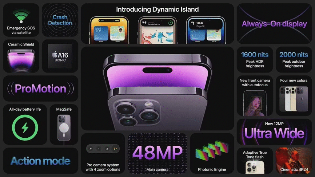 - 6.1-inch Super Retina XDR display featuring Always-On & ProMotion.