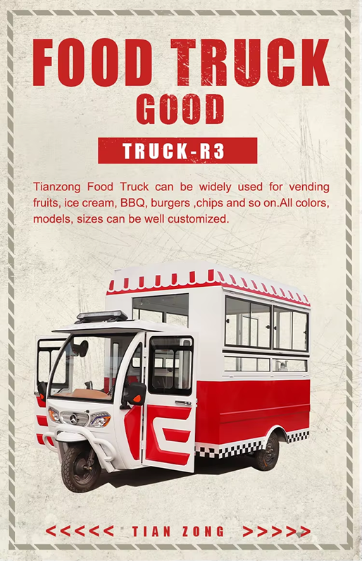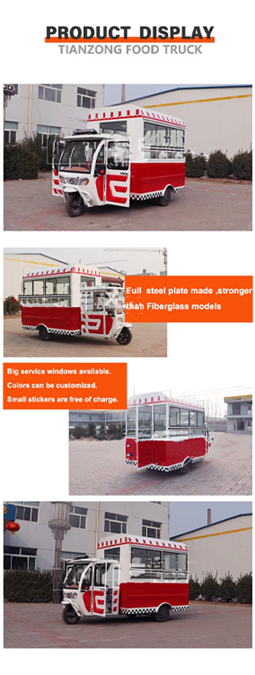 TIANZONG R3 Mobile Piaggio Ape Electric Tricycle Food Cart Tricycle Food Truck Catering Trailer with Full Kitchen Equipment